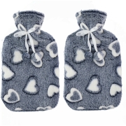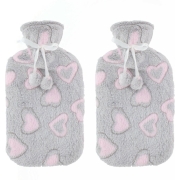 Warmwaterkruiken 2 liter met zachte fleece hoes grijs/hartjes 2x stuks -