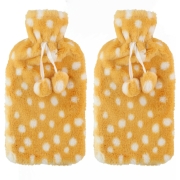 Warmwaterkruiken 2 liter met zachte fleece hoes goud/stippen 2x pieces -