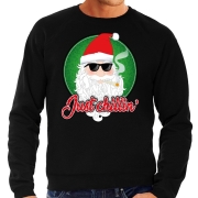 Bellatio Decorations Foute Kersttrui just chillin zwart voor heren. Deze Kerst trui / sweater is bedrukt met afbeelding van een coole kerstman met joint en de tekst: Just Chillin'. Deze kersttrui…