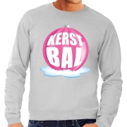 Foute kersttrui kerstbal roze - sweater - grijs - voor heren - kerstballen trui XL (54) -