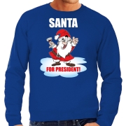 Santa for president Kersttrui / Kerst outfit blauw voor heren M -