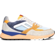 Sneaker van Floris van Bommel in wit leer met beige suède, mesh en blauw leren accenten. De sportieve schoen heeft een honingkleurige rubberzool voorzien van een kenmerkend zigzag profiel. Artikel…