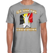 Verkleed T-shirt voor heren in de kleur grijs. Het shirt is bedrukt met de tekst: We are the champions! Met de vlag van Belgie. Heb je binnenkort een voetbal wedstrijd of een ander sport evenement…