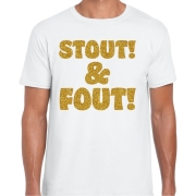 Verkleed T-shirt heren - stout! en fout! - wit - glitter goud - themafeest fout/goud/stout M -