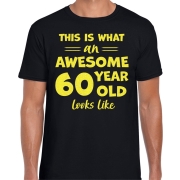 Cadeau T-shirt voor heren - leeftijd 60 jaar - awesome - zwart - glitter geel - Verjaardagsfeest XL -