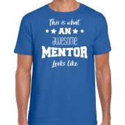 Cadeau t-shirt voor heren in de kleur blauw. Dit t-shirt is het perfecte bedankje/afscheidscadeau voor je favoriete mentor! Het kado shirt is bedrukt met de tekst: This is what an awesome mentor…