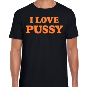 Foute party t-shirt heren - I love Pussy - zwart - glitter oranje - carnaval/themafeest 2XL -
