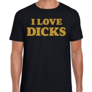 Foute party t-shirt voor heren - I love Dicks - zwart - glitter goud - carnaval/themafeest 2XL -