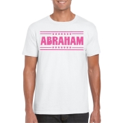 Verkleed T-shirt voor heren in de kleur wit met glitter opdruk in de kleur roze. Dit leuke T-shirt is bedrukt met de tekst: Abraham. Een leuk kado idee voor bijvoorbeeld de verjaardag van de…