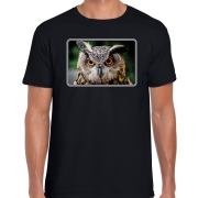 Dieren t-shirt met uilen foto zwart voor heren. Dit shirt is bedrukt met een prachtige foto van een Oehoe uil. Een tof t-shirt om cadeau te geven aan een dieren liefhebber of iemand die fan is van…