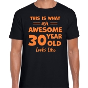 Cadeau T-shirt voor heren - leeftijd 30 jaar - awesome - zwart - glitter oranje - Verjaardagsfeest XL -