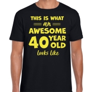 Cadeau T-shirt voor heren - leeftijd 40 jaar - awesome - zwart - glitter geel - Verjaardagsfeest M -