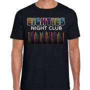Verkleed T-shirt voor heren - eighties night club - zwart - jaren 80/80s - carnaval S -