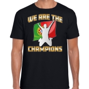 Verkleed T-shirt voor heren in de kleur zwart. Het shirt is bedrukt met de tekst: We are the champions! Met de vlag van Portugal. Heb je binnenkort een voetbal wedstrijd of een ander sport…
