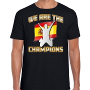 Verkleed T-shirt voor heren in de kleur zwart. Het shirt is bedrukt met de tekst: We are the champions! Met de vlag van Spanje. Heb je binnenkort een voetbal wedstrijd of een ander sport evenement…