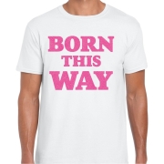 Gay Pride T-shirt heren - born this way - wit - glitter roze - LHBTI 2XL -