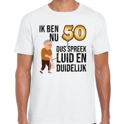 Cadeau T-shirt heren - leeftijd 50 jaar - wit - luid en duidelijk - Abraham - feest 2XL -