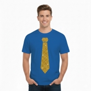 T-shirt met stropdas print goud - heren - blauw - feestelijke shirts - glitter - glamour S -