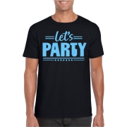 Verkleed T-shirt voor heren in de kleur zwart met glitter opdruk in de kleur blauw. Dit leuke T-shirt is bedrukt met de tekst: Let's Party. Heb jij binnenkort een foute party, carnaval of een…