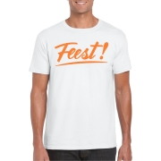 Verkleed T-shirt voor heren in de kleur wit met oranje glitter opdruk. Op het shirt staat de tekst: Feest. Heb jij binnenkort een feestje, carnaval of thema feest? Dan is dit shirt onmisbaar! Met…