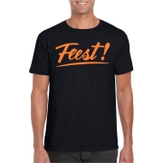 Verkleed T-shirt voor heren in de kleur zwart met oranje glitter opdruk. Op het shirt staat de tekst: Feest. Heb jij binnenkort een feestje, carnaval of thema feest? Dan is dit shirt onmisbaar!…