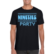 Verkleed t-shirt voor heren in de kleur zwart met glitter opdruk in de kleur blauw. Dit leuke t-shirt is bedrukt met de tekst: Nineties Party. Heb jij binnenkort een jaren 90/90s thema feestje of…