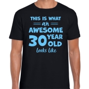 Cadeau T-shirt voor heren - leeftijd 30 jaar - awesome - zwart - glitter blauw - Verjaardagsfeest XL -