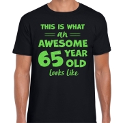 Cadeau T-shirt voor heren - leeftijd 65 jaar - awesome - zwart - glitter groen - Verjaardagsfeest XL -