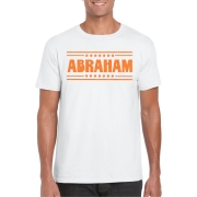 Verkleed T-shirt voor heren in de kleur wit met glitter opdruk in de kleur oranje. Dit leuke T-shirt is bedrukt met de tekst: Abraham. Een leuk kado idee voor bijvoorbeeld de verjaardag van de…
