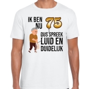 Cadeau T-shirt heren - leeftijd 75 jaar - wit - luid en duidelijk - verjaardagsfeest 2XL -