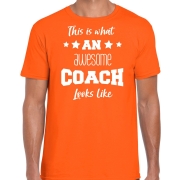 Cadeau t-shirt voor heren in de kleur oranje. Dit t-shirt is het perfecte bedankje/afscheidscadeau voor je favoriete coach! Het kado shirt is bedrukt met de tekst: This is what an awesome coach…