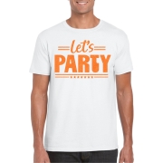 Verkleed T-shirt voor heren in de kleur wit met glitter opdruk in de kleur oranje. Dit leuke T-shirt is bedrukt met de tekst: Let's Party. Heb jij binnenkort een foute party, carnaval of een ander…