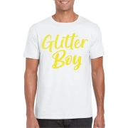 Verkleed T-shirt voor heren in de kleur wit met geel glitter opdruk. Op het shirt staat de tekst: glitter boy. Heb jij binnenkort een feestje, carnaval of thema feest? Dan is dit shirt onmisbaar!…