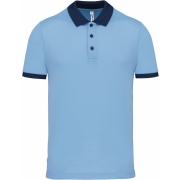 Heren poloshirt Sport Pro premium in de kleuren lichtblauw/navy. Dit poloshirt is gemaakt van 100% interlock polyester stof en is heel sterk, licht en ademend. Het shirt heeft een premium…