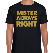 Foute party t-shirt voor heren - always right - zwart - glitter goud - carnaval/themafeest M -