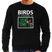 Papegaaien sweater / trui met dieren foto birds of the world zwart voor heren. Deze sweater is bedrukt met een foto van een Papegaai met de tekst: birds of the world. Een gave trui voor een echte…