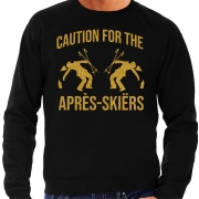 Apres ski sweater heren - caution for the Apres Ski - zwart - glitter goud - wintersport S -