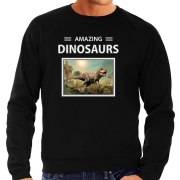 T-rex dinosaurus sweater / trui met dieren foto amazing dinosaurs zwart voor heren. Deze sweater is bedrukt met een foto van een Tyrannosaurus Rex dino met de tekst: amazing dinosaurs. Een gave…