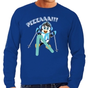 Apres ski sweater voor heren - Pizzaaaa! - pinguin - blauw - wintersport - snowboarden XL -