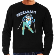 Apres ski sweater voor heren - Pizzaaaa! - pinguin - zwart - wintersport - snowboarden 2XL -