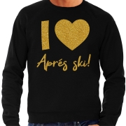 Apres ski sweater heren - I love Apres ski - zwart - glitter goud - wintersport - skieen 2XL -