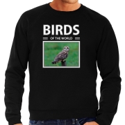 Velduilen sweater / trui met dieren foto birds of the world zwart voor heren S -