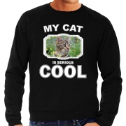 Bruine kat katten sweater / trui my cat is serious cool zwart voor heren M -