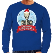 Grote maten foute Kersttrui Last Christmas I gave you my heart skelet voor heren. Deze blauwe Kerst trui / sweater is bedrukt met een skelet en de tekst: Last Christmas I gave you my heart. Deze…