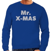 Foute Kersttrui Mr. x-mas zilveren glitter letters blauw heren S (48) -