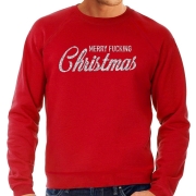 Kersttrui Merry Christmas gouden glitter letters rood heren S (48) -