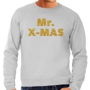Foute Kersttrui Mr. x-mas met gouden glitter letters grijs voor heren. Deze grijze Kerst trui / sweater is bedrukt met een gouden tekst: Mr. X-MAS. Deze kersttrui / sweater / sweatshirt is van dun…