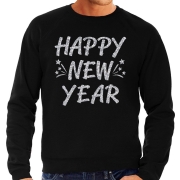 Oud en Nieuw trui Happy New Year met zilveren glitter letters, zwart voor heren. Deze zwarte Oud en Nieuw trui is bedrukt met een tekst in het zilver: Happy New Year. Deze kersttrui / sweater /…
