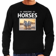 Zwarte paarden sweater / trui met dieren foto amazing horses zwart voor heren S -