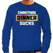 Foute Kersttrui Christmas dinner sucks blauw voor heren. Deze blauwe Kerst trui / sweater is bedrukt met de tekst: Christmas dinner sucks. Deze kersttrui / sweater / sweatshirt is van dun…